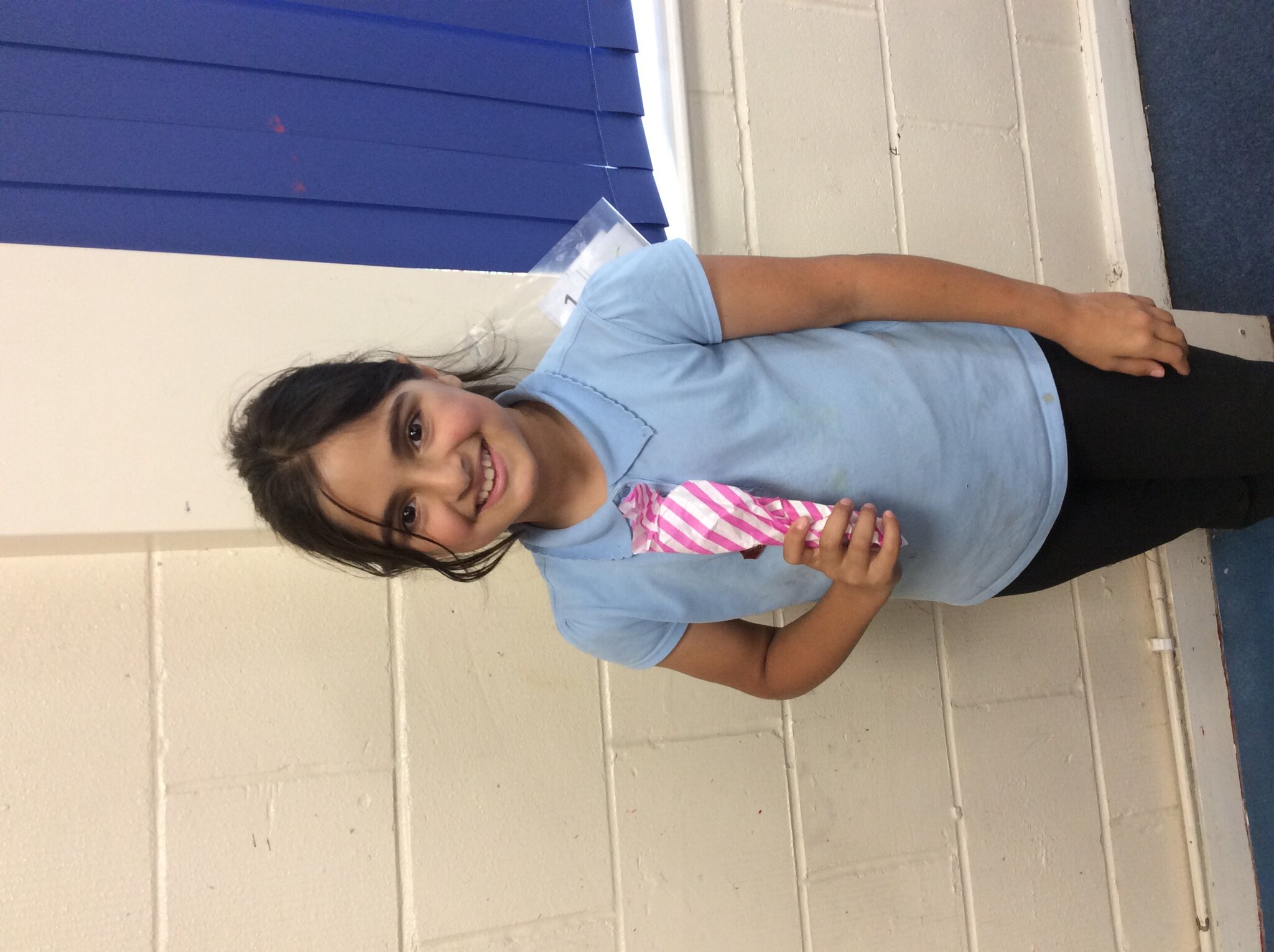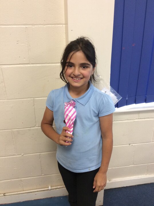 2 October 2025 Asma was one of the the 'Lucky Tray' winners today for Pizza Day. Enjoy your prize from Cath. y4 School Meals