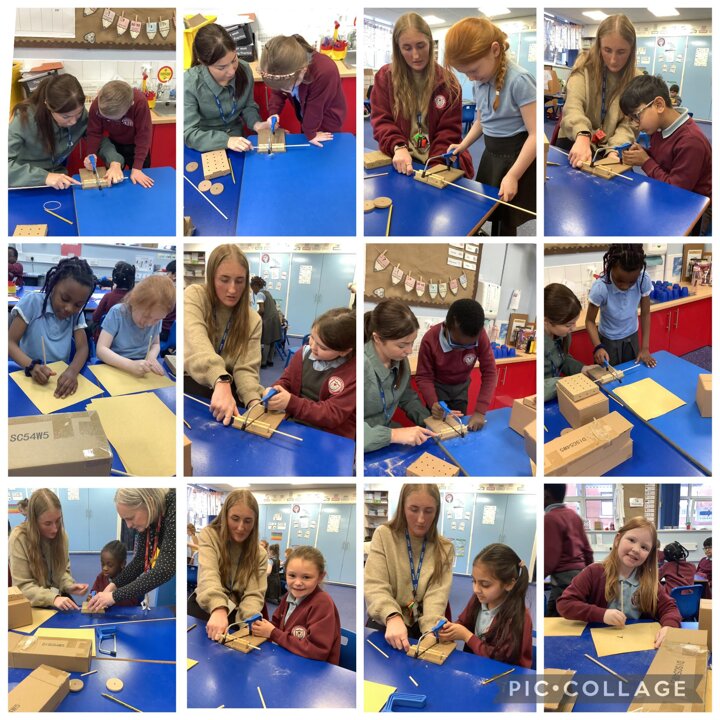 We’ve started designing and building our own vehicles. The children loved sawing dowels for axles, attaching wheels, and painting them to match their designs. Look out for photos of the finished products!