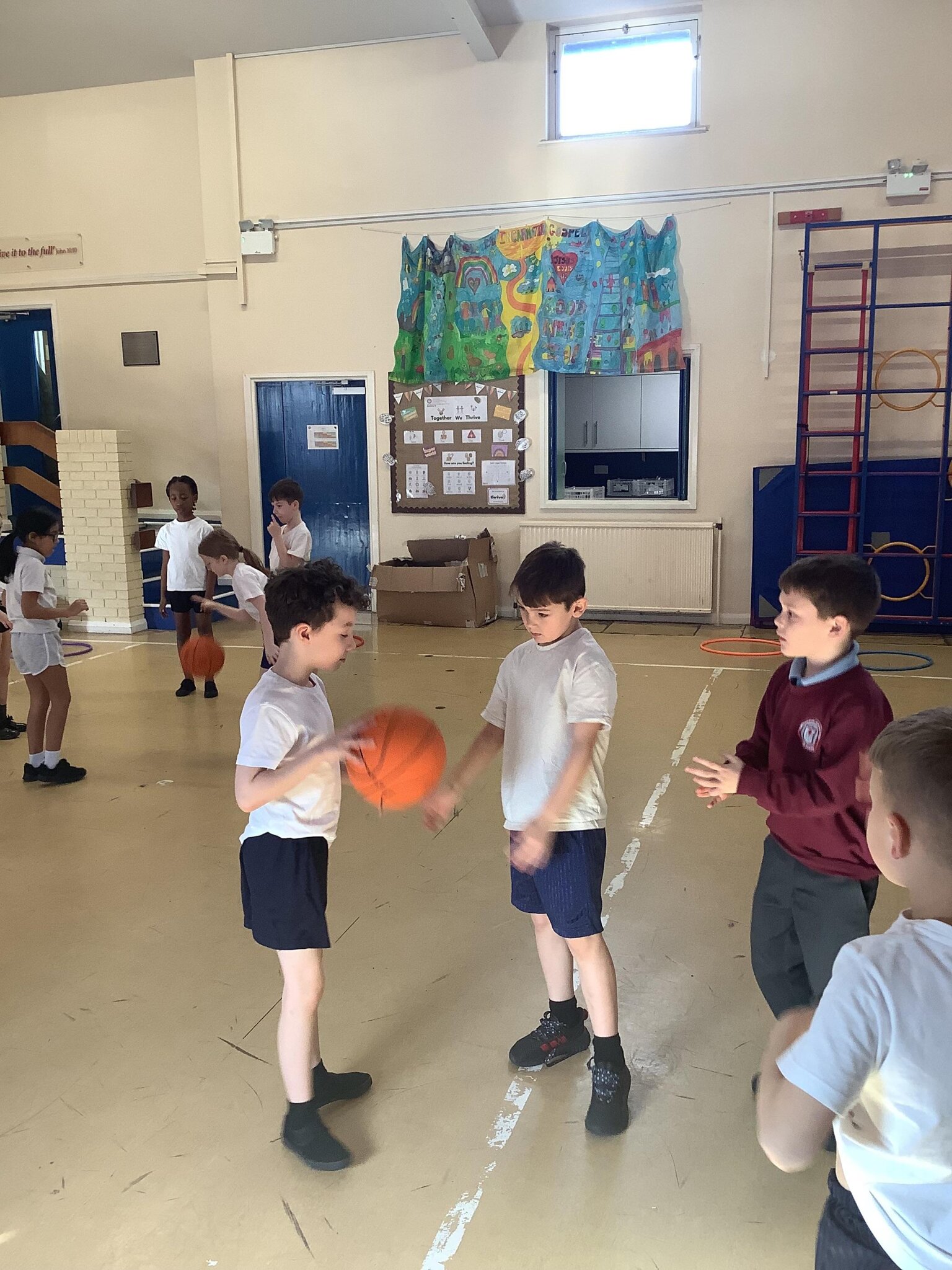 Such a busy day, in PE we are learning basketball skills..team work is needed and ball control. As you can see we are smashing it!