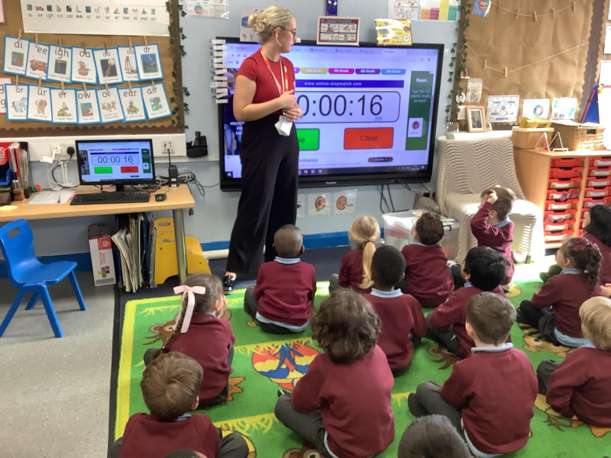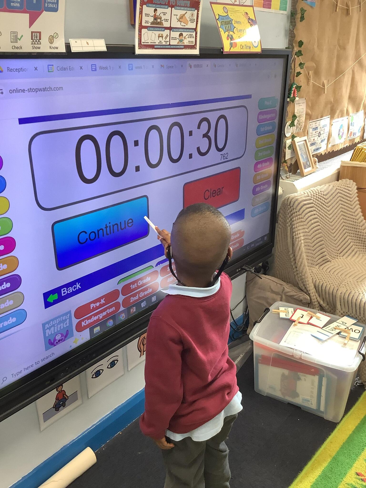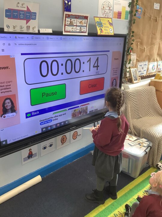 In Maths, we have been learning about Time. Reception had a go at stopping the timer at 30 seconds and making their own timetable for the days of the week!