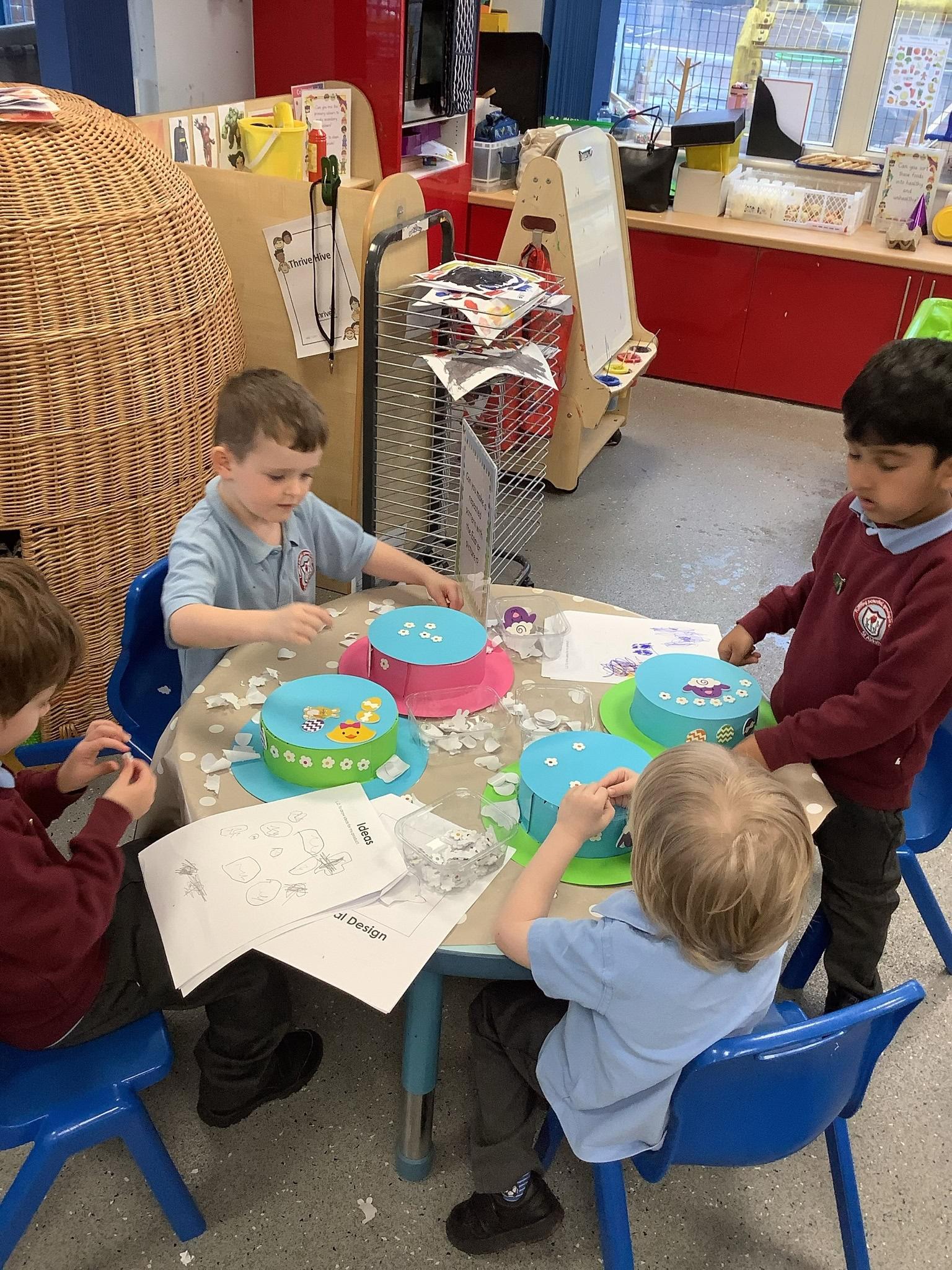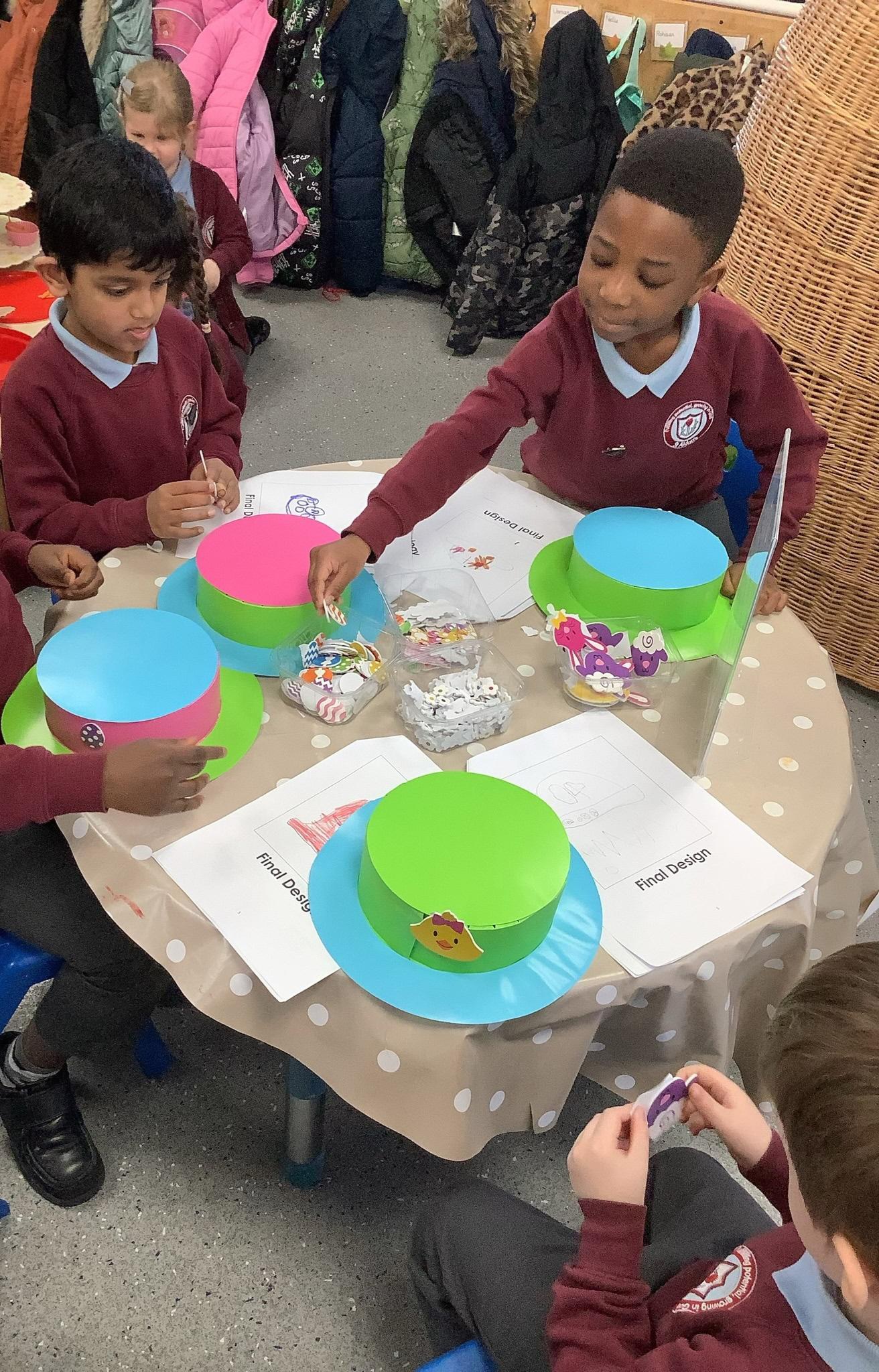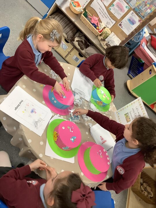 In DT week, Reception have been working exceptionally hard! We have been very busy investigating,designing and making Easter Bonnets to wear in church. They look fantastic!