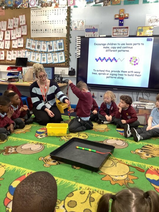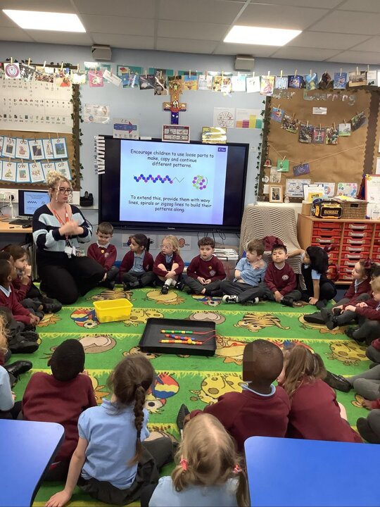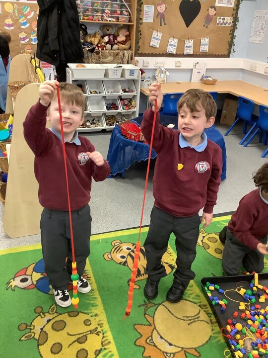 In Maths, we have been learning about Repeating Patterns. Reception have been fantastic busy bees and had a go at making their own repeated patterns!