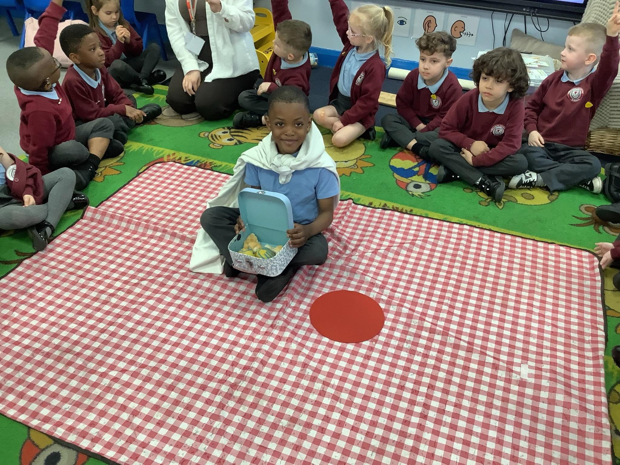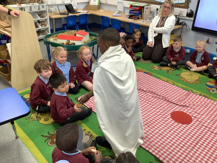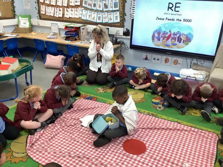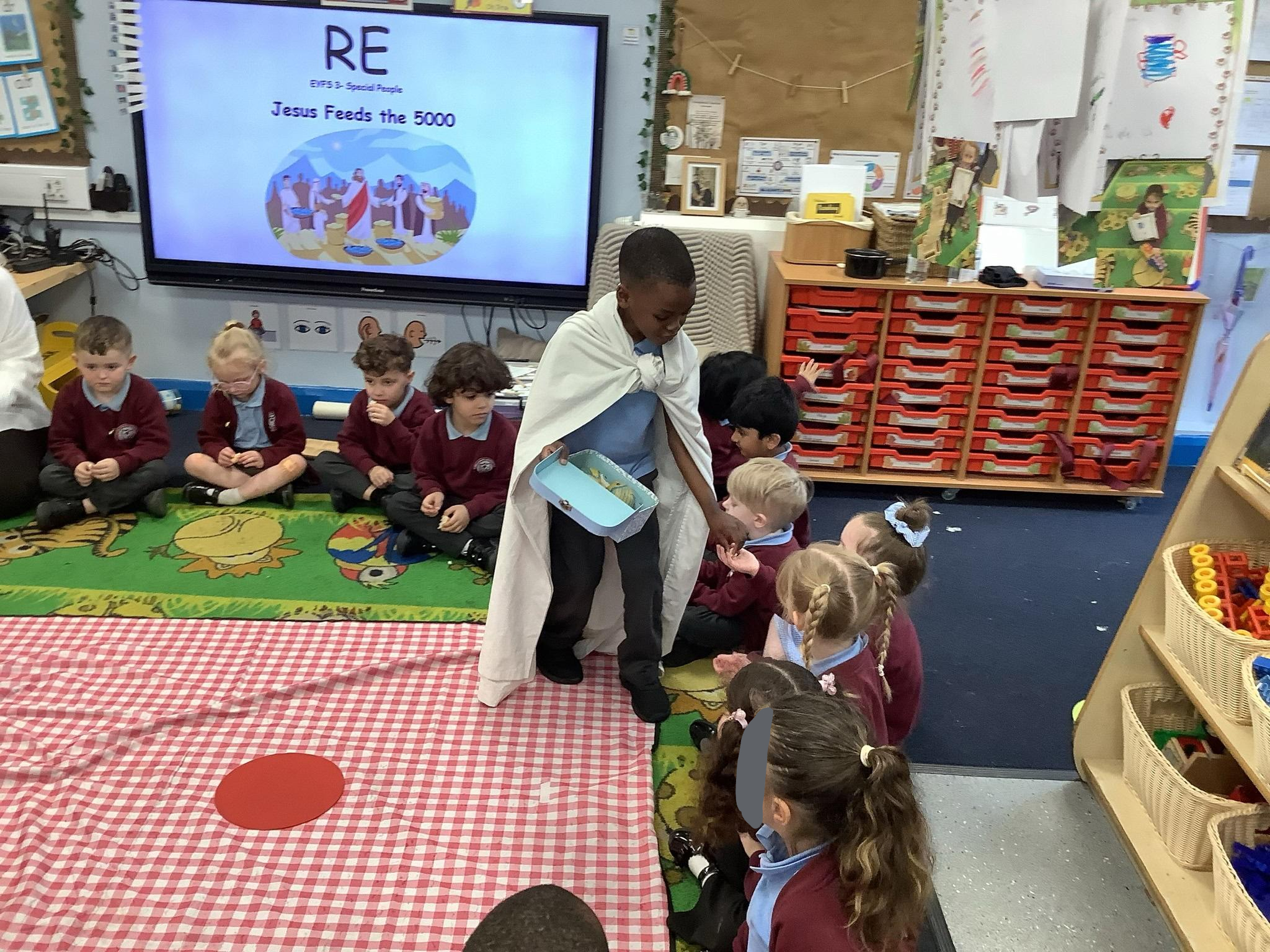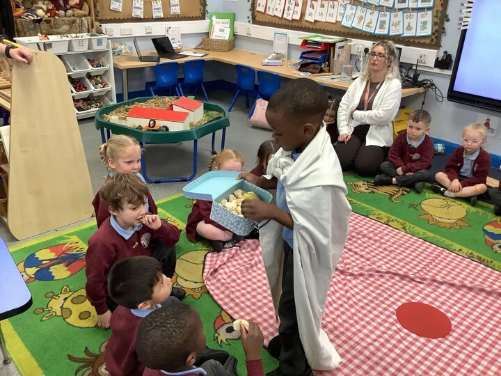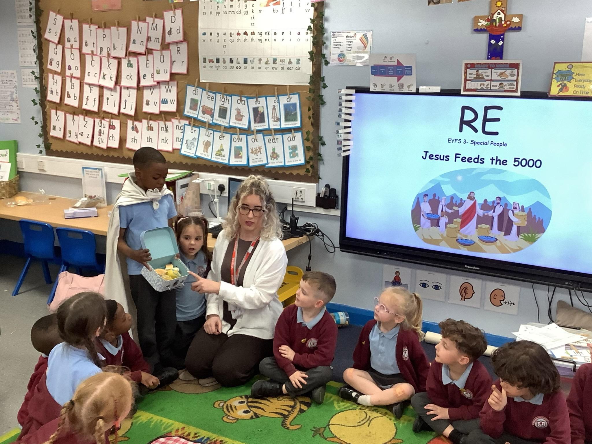 In RE, Reception explored 'Special People' by role-playing 'Jesus Feeds the 5,000'. They learned how Jesus used just two fish and five loaves to feed the crowd, showing how his faith and kindness made him truly special. Great work, Reception!