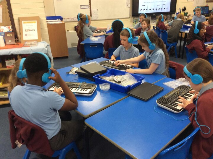 Music with Junior Jam introduced contrasting musical articulation on keyboards. The children focused on staccato (short, detached notes) and legato (smooth, connected notes), learning how these hands-on techniques dramatically alter a piece's style.