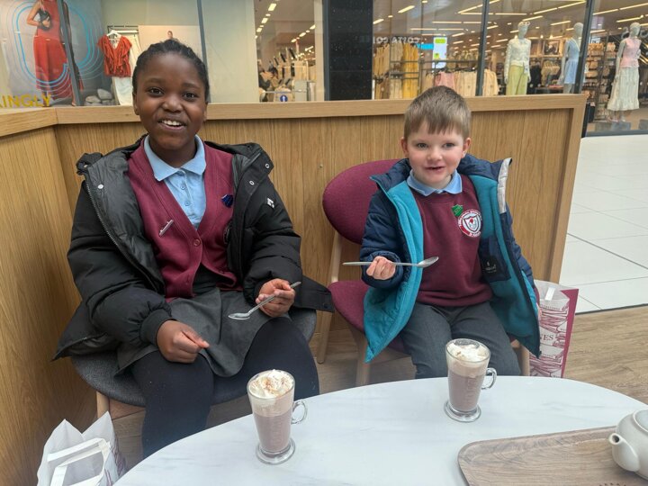 Reading Challenge Winners! Out celebrating our winners this morning from the Reading Challenge. We’ve chosen a book each and had a nice hot chocolate with lots of whipped cream, marshmallows and sprinkles.