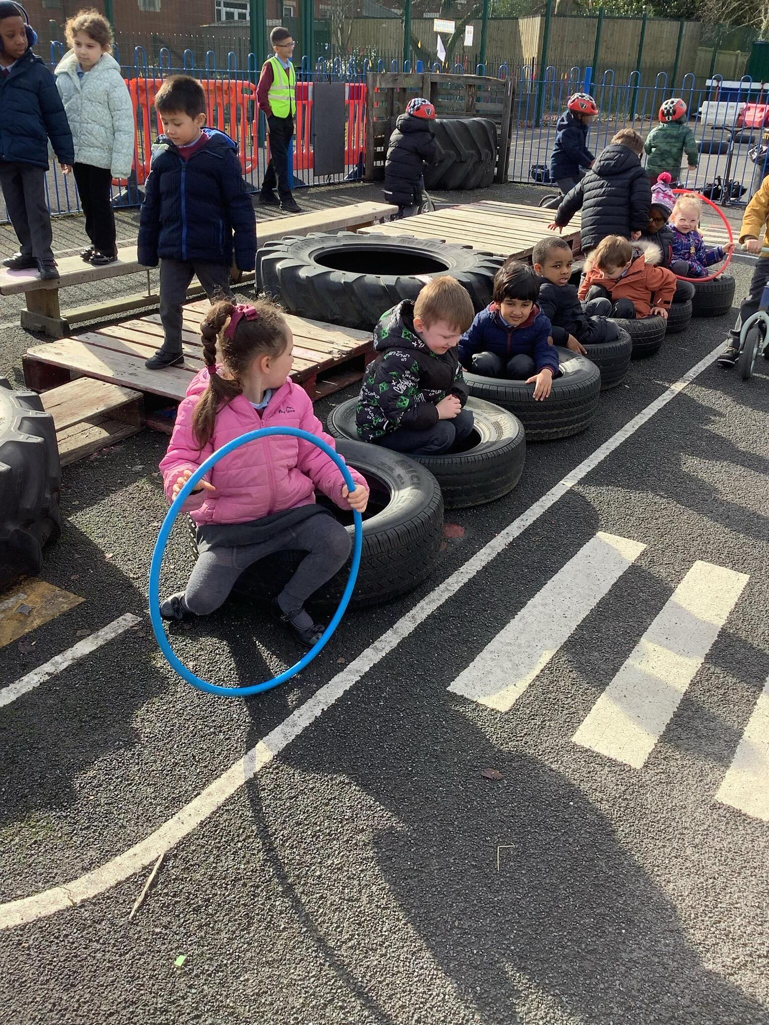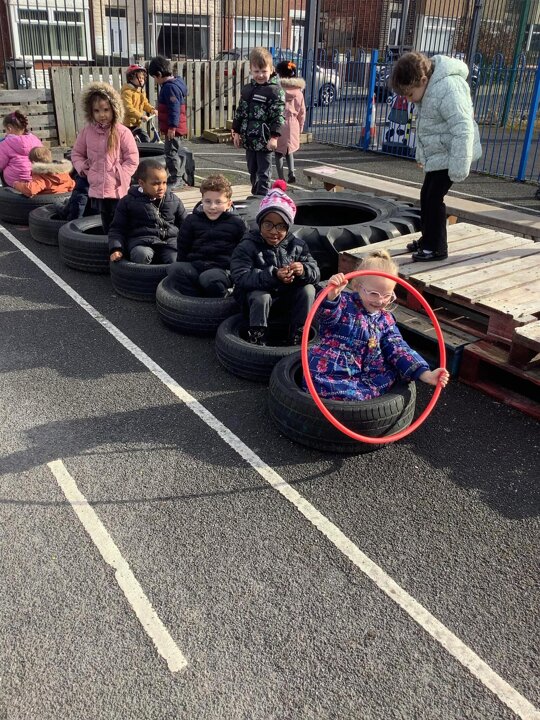 Reception working super hard as a team to make a bus, with 2 drivers for different places!