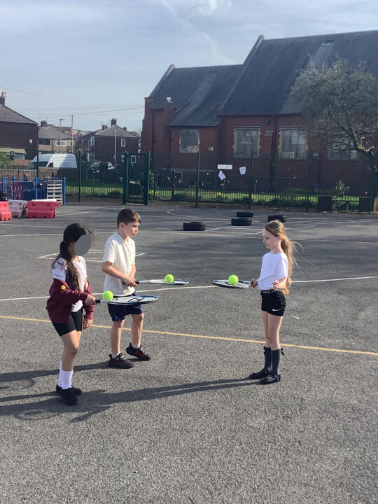 So much fun in the sun yesterday learning how to balance ready for tennis. Our PE star of the day was Qasim.