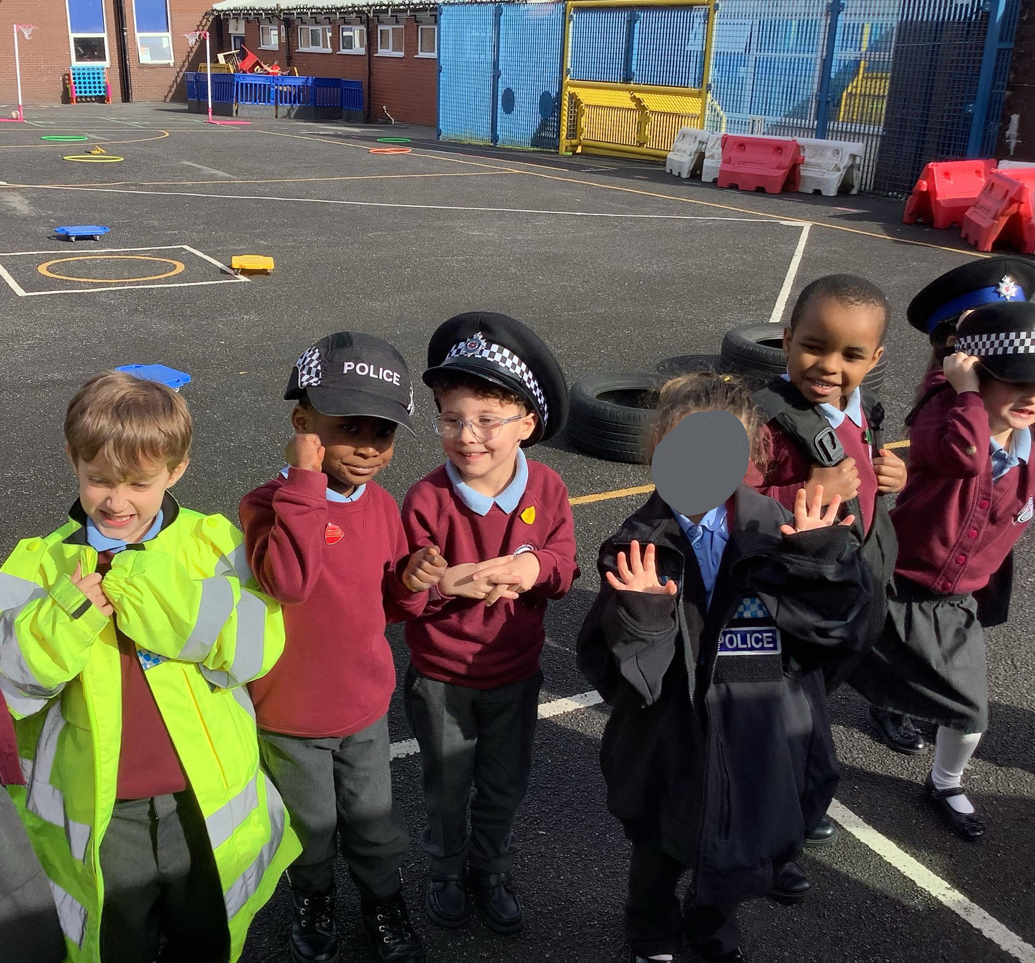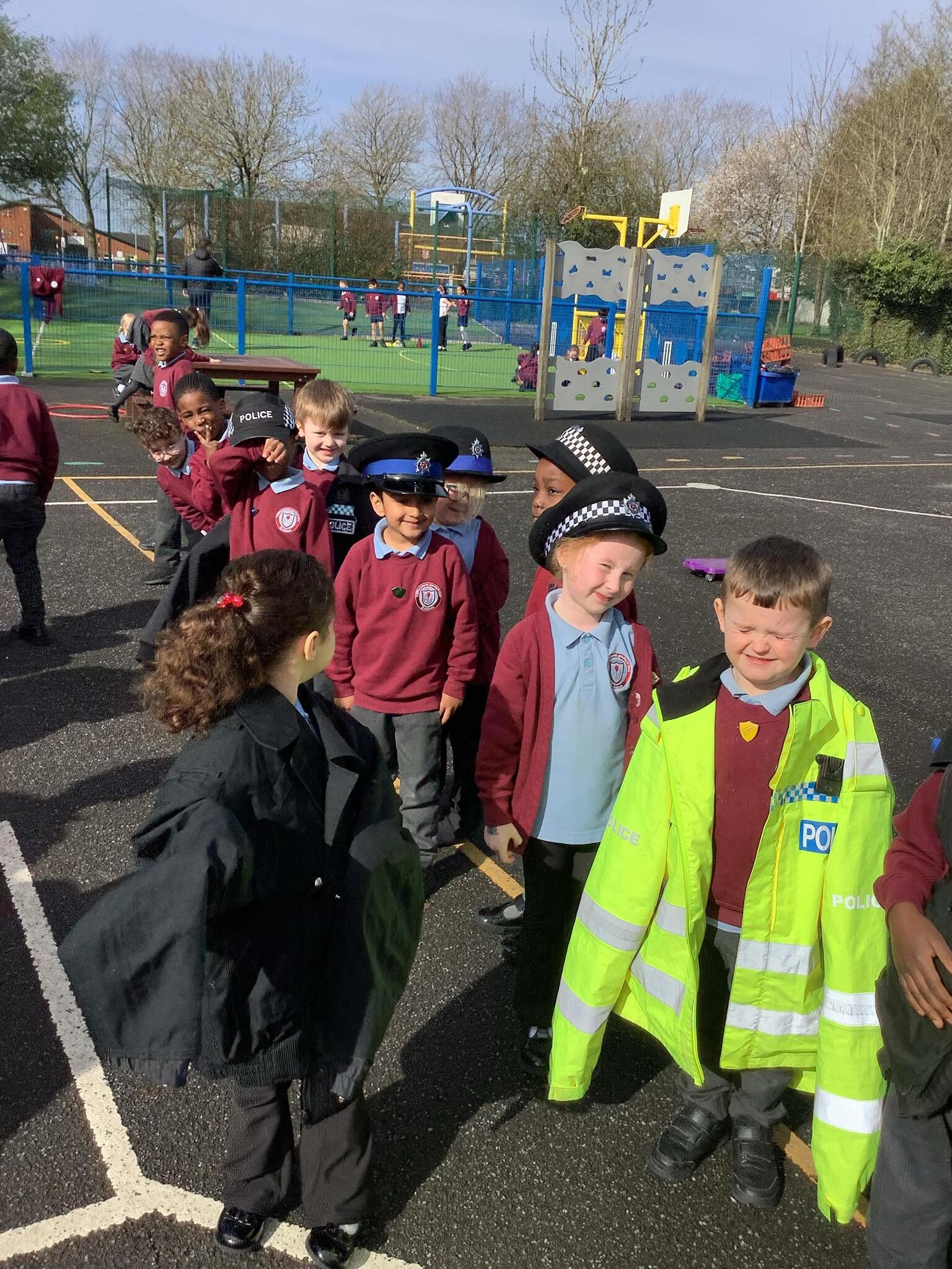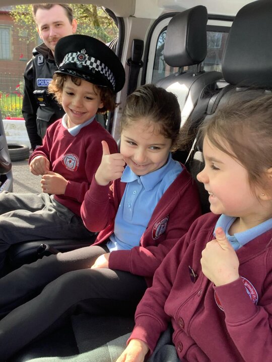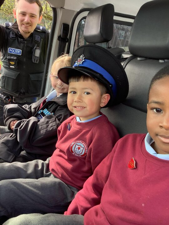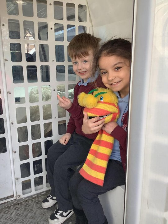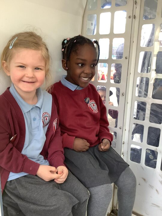 This term we have been learning about people who help us. We had a special visitor in today, Kirsty the Police Officer! Reception tried on some Police uniforms and even found Bob who stole my ring, in the back of the van!