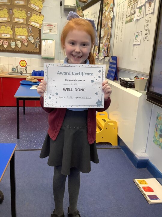This week our reader of the week is Grace... Grace shows a love for reading, she always puts 100% effort into both reading at home and in school. Keep up the good work Grace!